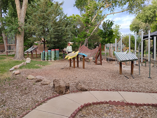 Read moreA great small oasis of a park. It has large and small grassy areas, many wonderful trees and plantings: even a “bee friendly” bank of special plants to attract bees! I have been visiting this park for over 30 years and have seen it constantly improve over that time. Mill creek borders and runs along on one side of the the park so it can be approached by 2 different walking/riding bridges. It’s also located on the Mill Creek Pathway which is a travel artery passing through different parts of Moab. Kids wade in the creek or play in the 3 different play equipment areas. There’s also a unique and surprisingly large collection of metal musical instruments alongside a small gazebo. Additions at the south end include a basketball court and bleachers. A few steps up a bank next to the “bee plants” are more whimsical metal sculptures and a new restroom building and a small parking area. The restroom has been covered in murals adding more art to this amazing,...