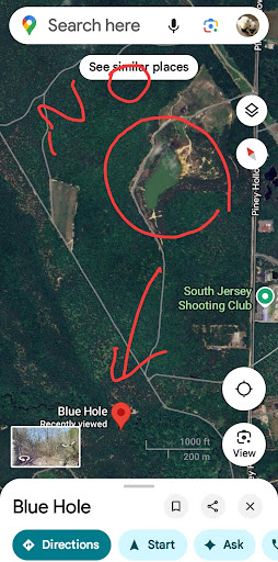 Read morethe photos posted here are MOST ALL NOT of the blue hole.. they are of an old PRIVATE sand quarry about 2 miles east on piney hollow rd .... the ACTUAL blue hole is best accessed by a sand road opposite the PH blueberry farms just west of the archery course.. take that sand road about 1 mile in.. and at a bend left.. the trail to the blue hole is right and best walked from the vehiclefrom here ... some of the folks complaining are issued tickets BECAUSE THEY ARE TRESPASSING.. NOT AT THE BLUE HOLE AT ALL !! the blue hole is a public wilderness area.. it is open all the hours of the winslow wildlife management area.. no one gets tickets for access unless they're after hours, swimming.. or at the COMPLETELY...