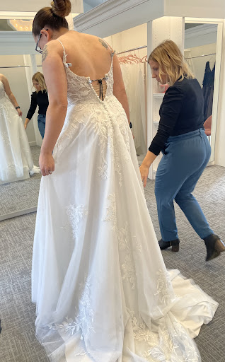 All around amazing experience... I got lost on my way and was late and they were totally understanding and were only concerned about me and that I wasn't upset! First of all, the store is so cute! Its fairly small and cozy, but the dressing rooms are really generous in size and the decor is really sophisticated and well kept. Julie was so kind and made trying on dresses a really easy and enjoyable experience. She explained how the dresses were grouped by style and let me and my guests browse and pull out whatever we wanted. She also pulled a few based on what I was thinking I wanted. I didn't feel pressured or rushed, everything I said was taken to heart and she was an absolute expert at interpreting my descriptions and reactions to things, and figuring out what it was exactly I wanted, as I really didn't have a solid picture of what that was. She was so friendly and sweet, I really can't pay her enough compliments on her service. The gowns they sell are all absolutely stunning, and it didn't take long for us to find the perfect one. After I said yes to my dress, we celebrated with a toast and pictures, they gave me a t shirt and we all laughed and talked for a while. I could not have asked for a better experience honestly. Beautiful dresses, lovely location and...