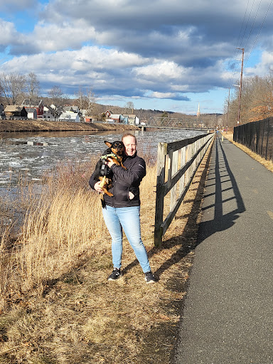 There are two distinct halves of this trail and an unused "middle section". The southern half is just south of Turnpike Road and heads south through the woods and over the CT River on a bridge. This is a nice peaceful section and on hot sunny days you will appreciate the shade. The northern half follows the CT river north into town, passes under the big bridge, and ends in a park. There is little shade here so bring sun protection if you plan to go this way. it also crosses a few roads, but only one is likely to have traffic. Finally, there is an unused section that continues directly from the northern end of the bottom half. It's overgrown and has broken glass, so I don't...