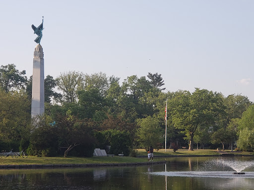 A beautiful little park that is full of history if you know where to look. The park itself was constructed on the site of an old golf course in 1906. The lake is artificial with a dam at the south west corner. Around the lake one can find stairs and benches dating from the early 1900s. The most prominent feature is the World War I memorial on the island. The giant stone obelisk inscribed with the names of the veterans lost in the Great War was dedicated in 1925. The sculptures are by Charles Keck. World War II, Korea, and Vietnam also have memorials on the island. In the north east corner of the park is a grove of trees planted in dedication to the 150th anniversary of the constitution.