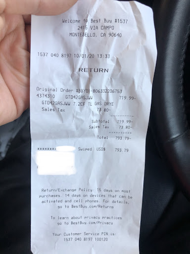 Read morePlease do your self a favor and shop online through Amazon or even Walmart has a better return policy on their products. I purchased 3 all in one computers from this location. I was offered the protection plan through their geek squad so I figured since I had bought the 3 computers there what better then to get them service there since they had the service. 2 out of the 3 computers were defective. I brought the first defective one in for repairs through the plan I had purchased. Big mistake! After 4 weeks of them submitting my computer for repairs, I get an email that the repairs were done and that the computer was being shipped back to the store, so I scheduled a pickup. The day of my appointment, I showed up, and I was told the cumputer was not there yet, I said then what is the point of making an appointment. So I waited an additional week. I went back to the store once again to ask if my cumputer had arrived and was told that their system shows the computer being delivered but that they did not have it there. So I was told to wait an additional 2 days a manager said he was going to give me a call and let me know what was going on. So I waited and never heard back from them. I tried calling the store several times, but their customer service phone number always routes you to a call center in India and they can't help you there. So again I made my way to the store and this time I spoke with the store manager I explained once more the situation and he basically said that I had to wait until they locate my computer and if after 4 more additional weeks they could not locate it then they would try to contact corporate to see about replacing it. I asked them to provide me with the email address and phone number of the corporate office but the manager gave me a bogus 1800 which he knew was going to direct me to the call center in India. I went home did my own research and found their corporate email. I sent them an email and they never responded to me. It wasn't until I filled a complaint with the BBB that I got a calk from corporate. The corporate representative was very rude and tried to justify everything by saying that the protection plan was not under my primary phone number but under my business number. What difference does it make both accounts are mine. He offered me no solution, no apology, and basically told me the same thing. I had to wait until they can figure out their mistake. It has been almost 8 weeks, no computer and no resolution. Please do not buy anything...