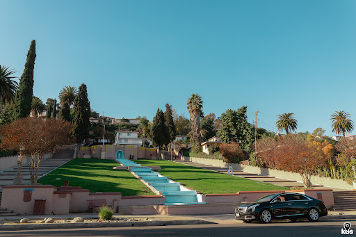 You can find many stairs sloped in a way that'll be a fun and quick challenge to go through in order to reach the top, parking at the base as well as up on the hill which would require you to go through side streets first, and that beautiful mini waterfall that lights up during the night.