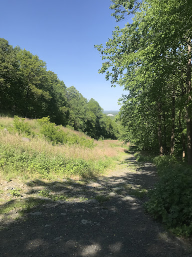 This is not good for hiking, but a good biking trail. Someone had crushed a medium sized snake, perhaps when they were biking down the path. Sad to see this. The utility company has cleared a path and so there are no trees along this path. It gets very hot during the day if you are walking up or down this trail. There’s a bench at the top. Must be hard to hike down this slope if there is ice or snow on it. I would suggest that hikers avoid this slope completely and stay within the wooded parts of the preserve. That part is quite unique...