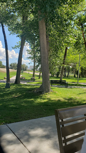 Baldridge Park is a part of the expansive Riverbottom Park situated along the Uncompahgre River. If you come in via Apollo Road on the north side (tricky the first time) there is great shade for parking in the one-way section. Beautiful shaded area with picnic benches and pavillion by the river. Skateboard park, kids playgrounds. Cement walks in park. Watersports (aka 'kayak park') park is right there - fun to watch from the 'rock grandstands' or the bridge, especially in May/early June when the river is raging! Cross the river and lots of concrete paths following the river, perfect for walking, jogging, bicycling, skating. Dirt trails for mountain bikes, walking. A frisbee golf course. Connects with Cerise Park to the north: soccer fields, picnic areas, recently completed dog park, etc. Ample parking, easy access, well maintained. Awesome parks complex...