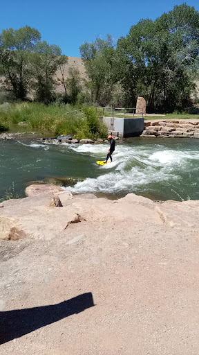 The Montrose Water Sports Park (WSP), consisting of 1,000 feet of river channel, is one of the largest in the state of Colorado and one of the few in the U.S. to be accessible by ADA standards. The park was designed with all citizens in mind – from ankle waders to expert kayakers. It is located in Riverbottom Park, a branch of Montrose’s Clifford E. Baldridge Regional Park complex, and includes six drop structures. The WSP has a gradient of 11 feet for 1/5 miles, supporting a leisurely run with natural obstacles.