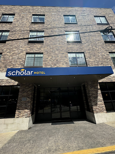 Cons You have to pay as a guest to use the hotels parking... Hotel lobby was uninviting, sparse, cold. You should fire your decorator. You should also fire the employee that thought it would be ok to keep their bags of groceries on the bar top. Absolutely none of the amenities listed were available. Literally none! The rooftop lounge area that boasted about its pool and bar was gutted. However the door to the roof was open so you could roam about the dangerous area. Rails missing, exposed wiring, broken glass and rotting trash were just some of the things The Scholar Hotel offered us as guests! I can't thank you enough! Door key would deprogram if put close to a cell phone, or credit card, or if air touched it! We loved running up and down the steps to have the card reactivated. Yes we used the stairs because we didn't feel safe using the elevator. The steps weren't much better honestly. The bathroom had the mirror removed but we were lucky enough to be able to see where it had been. Had it not been for that open seam along the backsplash, we wouldn't have noticed the roaches! I guess they also had reservations for the Executive Suite. There was no bathroom exhaust fan. It makes for a great stinky sauna but since there was no mirror we didn't need to worry about fogging it up. The faux tile really gave the bathroom that classy touch! Room lighting was dark. That was a good choice on their part though. I'd want to hide what a craphole it was too. Remote did not have a back. Just fun all around to have to continually put the batteries back in. And for the grand finale, drum roll please.....building exit door did NOT open in the direction of egress! Now we are throwing life safety out the window!