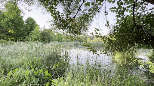 Scenic and interesting suburban park near horse stables. Interesting, paved long path runs parallel to a creek, easy to use for wheelchair, stroller, skates, bikes. Parallel path on other side of creek has gravel - horses usually walk this path. Beautiful lake with paved path on one side, gravel path on another side, grassy area on another side . Nice playground and picnic area near big open mowed field. Lots of dogs are usually seen being walked on leash. Nice restrooms at both ends...