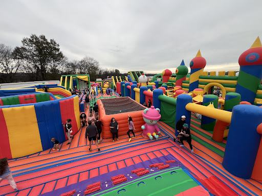 This place is huge! Tons of different bouncy areas that are all built together. A huge tower to climb with slides, basketball, and tons of other things to bounce on. Theres also some yard games like big connect four and big jenga.