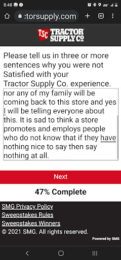 Read moreFirst off 2 of the 4 employees were not wearing a mask at all. The cashier and stocker were not wearing one at all, a young woman who I believe works in the costumer service section had hers on her chin. The only one I saw actually wearing one was management because he was telling the maskless man where to move things. Because of the public health crisis that we are currently dealing with in our community I have no intentions of shopping at tractor supply again, if this is their response to a pandemic. Second, I was there for dog food and a heater I found online and it said there was one in stock. It's in stock alright and has been returned twice because it doesn't work and they put it right back out. I took photos of the two return tags both in different handwriting and dates. So Tractor Supply knowingly sells broken merchandise? Between seeing broken merchandise being resold more than once and the person who would be taking my money and being direct contact with me not wearing a mask and management seeing it and being okay with it. I will no longer be shopping at Tractor Supply for any of my home needs or...