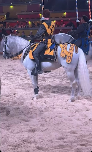 Honestly, I feel very conflicted about my experience. Overall, I was highly impressed by the production, and the brilliance of the business model itself. The cast and crew were superb, the animal trainers amazing, and everyone was clearly enjoying themselves, myself included. However I am so glad I did not attend this show when I was younger, for I would’ve been brokenhearted. One little girl put it best: “Where are all the lady knights?” For an experience that offers the option for little girls to receive a sword and be knighted as warrior princesses, I was shocked to see a stark lack of diversity in the arena itself. I quickly learned that casting women as knights/squires/chancellors is not even permitted at Medieval Times, though the reason is unclear. I personally know professional women reenactors who battle with medieval weapons as well as many who are expert in horsemanship, including vaulting, liberty, and drill teams, so it does not seem to be a matter of skill or ability. As for historical accuracy, the amount of anachronisms present in the dinner theater and the focus on fantasy over historicity would rule this out, especially with the growing amount of female warrior characters in today’s fantasy media culture… not to mention there were reportedly real female knights in history, though most had to keep their gender a secret (an excellent opportunity for a subplot, Medieval Times… you’re welcome). Furthermore, according to the show I watched, casting a female knight or two wouldn’t have even affected the script; actors were referred to as gender-neutral “knights”, there were no romantic subplots, and most actors did not have speaking parts. That leaves the reason, I fear, to be perceived audience expectations of gender roles, though for my part, I would have been over the moon to have been thrown a flower from a lady knight… and I believe the boys in the audience would not have been adverse to this either. Honestly, the absence of actresses in the arena was definitely more notably jarring than a woman in armor would have been, and I genuinely want to know MT’s philosophy behind this… and challenge them to modernize as I believe a change in casting would only enhance their image and creativity, not undermine it. In sum, while bringing medieval chivalry to the modern stage is absolutely enchanting, the associated medieval misogyny is preferable kept...