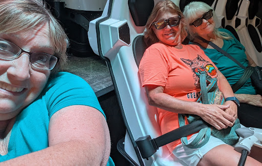 Read the lowest reviews first before spending your money! I thought this would be like the fun moving theater at Wonderworks. This was worse. HORRIBLE. If you're overweight, the seats aren't comfortable or made for you. The handle bars jam into your thighs and with the jostling going on, you'll leave with pain and bruising like I did. I have 2 big bruises on my outer right and left thigh; it's been a week. My oldest niece and nephew didn't like it. I left with a headache, feeling sick to my stomach. They have warning signs at the ticket booth, but how you feel afterward isn't what you'd expect. I was lightheaded for the rest of the day. My internal organs were probably throttled all throughout my body; good thing I wasn't pregnant. Jeez. This ride literally throws you around. Myself including the others in the theater did not enjoy how brutally the seats jostle and jerk you around. You wear lap-belts on it, but even still that wasn't enough. I felt like I needed something across my chest too because I was being tossed around so roughly and kept feeling like I'd be thrown out of the chair. It's already uncomfortable if you're petite or of average size. If you're overweight or obese (even if you can fit in the seat and think that you can overlook the handle bars jamming into your thighs), don't push it, just don't even...