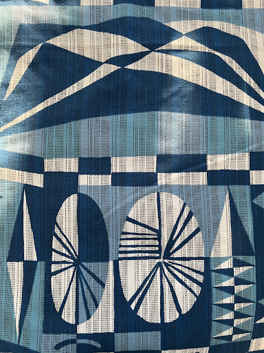 I had passed this antique shop from time to time over the last few years always admiring the window displays but the last time I had gone in was years ago. I stopped by the shop yesterday and even though it was closing time - 5:00pm - and the owner (Lynda) was at the front door, she welcomed me right in. The shop has an impressive selection of majolica pottery and crystal Christmas trees. Lynda was so friendly and knowledgeable. We chatted about American art pottery companies and what we were collecting and she showed me the various fruit patterns of an entire group of 20 French majolica plates. My husband then joined me in the shop, and I showed him the plates and we also looked at some of the Christmas trees (he knows how much I love Christmas as a holiday) and Lynda explained some of the details of the history and workmanship.As we were in the last room, my eyes landed on a bolt of 1950’s vintage Swedish fabric. It was beautiful, like new condition (see photo below) and perfect for a pair of cushions for a vintage George Nakashima chair which I had left at the upholsterer for months. We bought the fabric and will come back to get a...