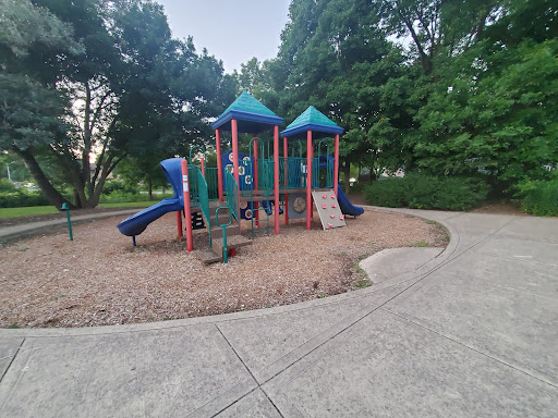 Pros: Easily accessible with dedicated parking lot Great playground with small and large kid areas Two baseball fields Fishing pond with Paved and relatively wide walking path Small, covered area with picnic tables Large, open grassy spaces, some shaded by trees