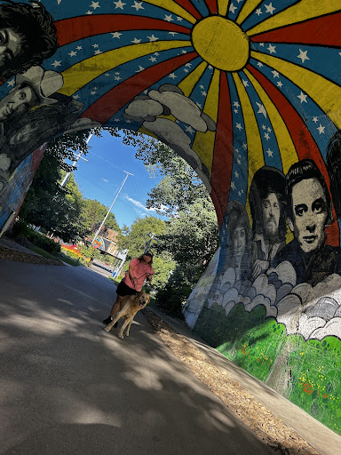 This is a beautiful park only few minutes drive from downtown. The park is huge, free to explore. It has several large murals in multiple underpass bridge, walls and boundaries. Thereās a big childrenās playground, a sand volleyball courts, and picnic benches. Thereās a dog park as well. There are free parking spots right along the curb of the park, with 2 hours limit. At the entrance of the park there are multiple gates built with steel beams.