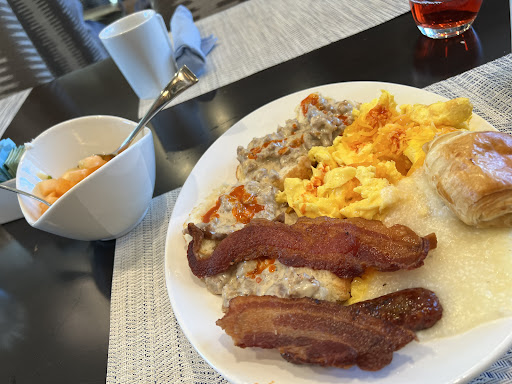 Our room was nice, but it was so humid. We had the AC set at 68 our entire stay and it never got below 73. We ate breakfast and dinner in the hotel restaurant once and it was good both times. There was a ton of options for breakfast which we liked.