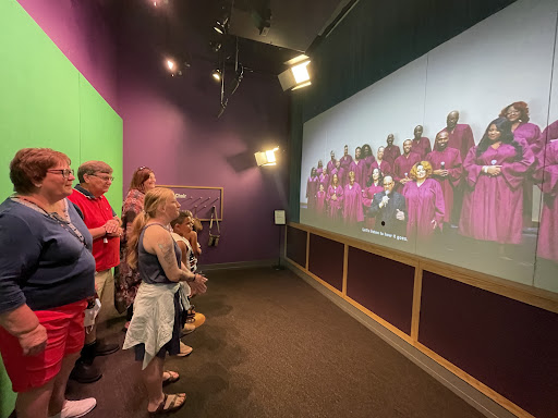 Once inside the museum, you're greeted one on one with someone to get you signed up for your RF technology band that will build your experience throughout the museum. Everyone starts in the Roots Theater with a 5-7 minute orientation video. Once out, you're released into a universe of Black heritage music. In the grand hall, huge interactive tables with high definition audio headphones give you a great overview of the music within the galleries. In the Gospel area, Wade Into The Water, you can join the Gospel choir on green screen and sing live with them. The outcome is high quality and hilarious.