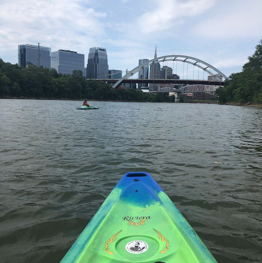 It's completely unrelated, but i recommend walking across the pedestrian footbridge for some great views of downtown Nashville before or after your pedal...