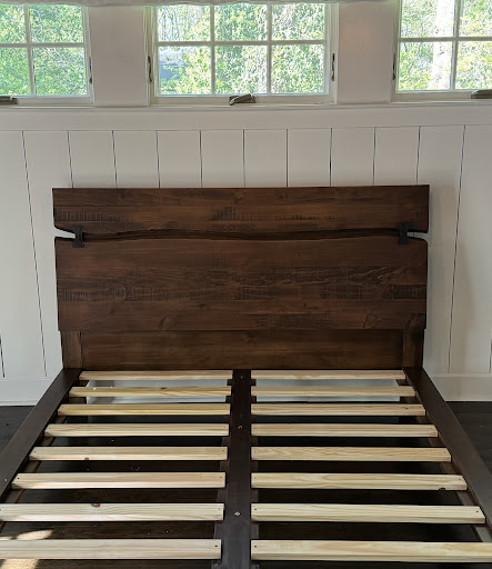 -Make sure to zoom in on the photo and fully check out that gorgeous solid wood headboard with a “live edge”. I don’t even have a mattress yet; and I don’t care, because I have my amazing bed! Thank...