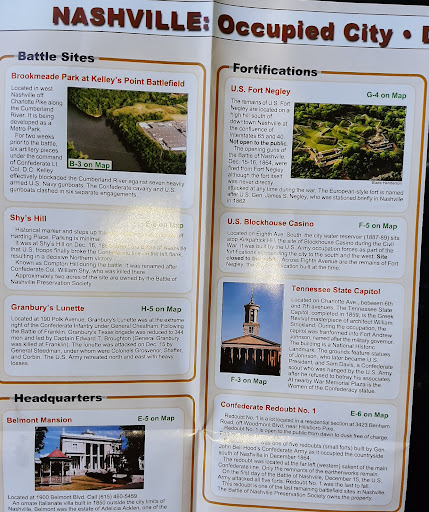 Read moreExtremely well kept grounds, and a spectacular 365 degree Nashville view at top of a short hike. Replica cannons, a historical marker and photo board, and new marker with tribute to Minnesota troops who died for the Union when taking Shy's Hill on a brutally cold December day. At the peak, the grounds are cleared and never crowded. Three flag poles commemorate the Confederate Army of TN, Union Army of Minnesota, and U.S Flag. If I can find it, I'll include a picture I took 10 years ago of an Abraham Lincoln impersonator at top of battle site. Will also add the new MN marker at base of trail. Solemn, peaceful, beautiful, and well cared for by dedicated volunteers. 10 minute hike, moderate climb....