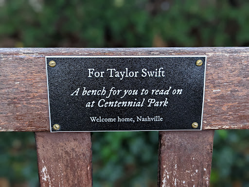 ย ย ย Read moreWow, the Taylor Swift Bench in Nashville is a total vibe! It's like a love letter to Taylor, tucked away in the heart of Music City.