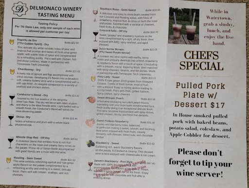 Read moreMy mom and I went on the wine train ride from Nashville to Watertown. Plenty of parking on-site and attendants to direct traffic. While the train didn't leave until 10am, we arrived at 9am and there was already a ton of people parked and boarding the train. Also, they do not open the bathrooms on the train until the train starts moving. There are two toilets in the museum/ waiting area and we waited in line for 45 minutes to use the bathroom before boarding the train. So either arrive earlier or stop at a gas station and use the bathroom before parking. The boarding process was easy and pretty straightforward. We were in car 4711 towards the engine and furthest from the dining/ snack car. There are 4 seats grouped together, so you will be facing another couple if you don't have 4 people in your group. Each seat had some paperwork about Watertown, the wine list, and a wine glass to keep as a souvenir. The trip to Watertown took about 2 hours and during that time our hostess gave us 13 very small samples of Delmonaco wines. She was very kind and knowledgeable and explained in detail the scents and tastes of each wine. The trip to Watertown was very enjoyable (probably because we were all a bit buzzed). When we got to the town there were few amenities. A couple of boutiques, an archives museum, Mexican restaurant, meat and 3 restaurant, coffee shop, library, the Delmonaco restaurant, and a BBQ food truck. We opted to eat at the food truck and sit at one of the many benches surrounding the downtown square. After lunch, we made our way to the Delmonaco store where they had a live band and seating outdoors. There was unfortunately not enough seats for everyone. And many people were sitting on the grass, nearby rocks, and random structures. You are also able to purchase wine from the Delmonaco store to drink on the train ride back or save and take home. They recommended purchasing the wine immediately upon arrival to Watertown because of the long lines. We boarded the train at 2:30pm and left at 2:45pm. On the way back to Nashville, which took about 2.5 hrs, there was no entertainment so most of the passengers took naps or played on their phones. Overall, for $80 a person it was a bit lackluster, but I do recommend going on this adventure at least once. The wine was delicious (my favorite was the blackberry) and it was very fun to ride on a train! However, I do wish there were more food choices in Watertown and some kind of entertainment on the train going back...