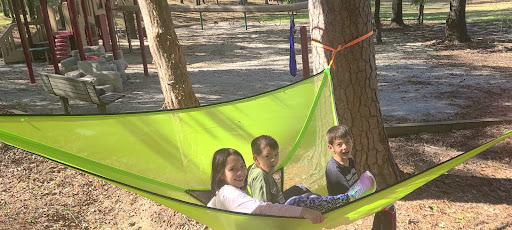 There is a playground on site for the kids and a designated area for swimming.