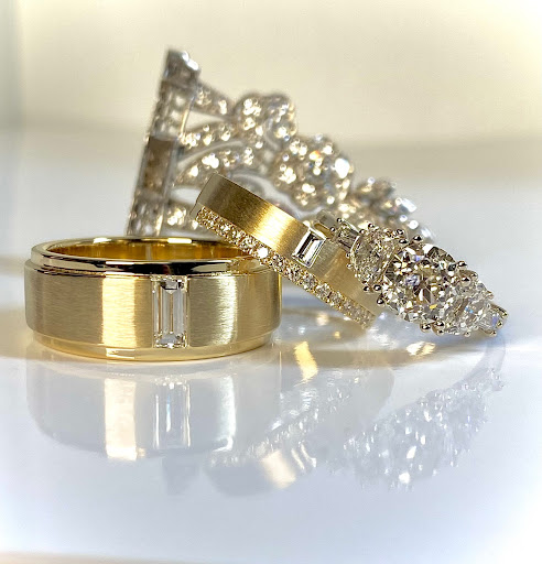 When it came time to figure out our wedding bands, we remembered how well they treated Jasmine over that tiny piece of work done for free and decided to make an appointment with them for jewelry design. That was one of the best decisions we made in getting ready for our wedding! When we brought Gary our idea for an east-west set pear engagement ring, he quickly turned our rough ideas of stones and metals into a 3D rendering, then later a 3D print and ultimately a stunning final product. He helped us design the engagement ring and wedding band as a pair so that the wedding band curves perfectly around the pear diamond when worn together. Later, when we brought him the even more hair-brained idea to replicate one of Jasmine's complex tattoos in a ring design, we sat down for a full hour figuring out if it was even physically possible to construct; in fact it was, and I now wear an incredible platinum band with inlaid spirals of gold that looks exactly like my wife's tattoo. He is such a true craftsman and engineer. He and Maureen together are so patient at explaining the process and guiding towards a perfect result. We could not be happier with our choice of jeweler for our wedding sets, and we know exactly where we will go (or tell friends to go) for any jewelry...