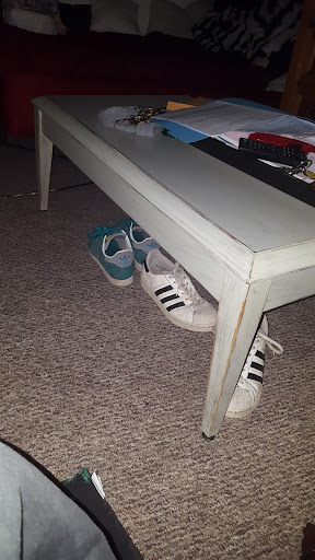 I got a coffee table for my apartment here, which I will include a picture of, for only...