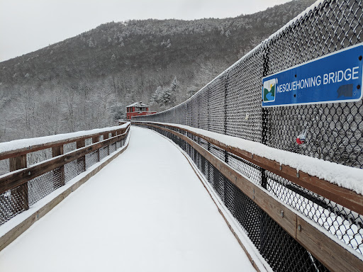 This is the Nesquehoning Bridge, (it's on the D&L Trail) and locate in the Lehigh Gorge State Park. The bridge offers views of the Lehigh River and Mount Pisgah on the southwestern side of the river. Looking upstream you'll see the Lehigh's confluence with Nesquehoning Creek. Looking downstream one can see East Jim Thorpe with Bear Mountain in...
