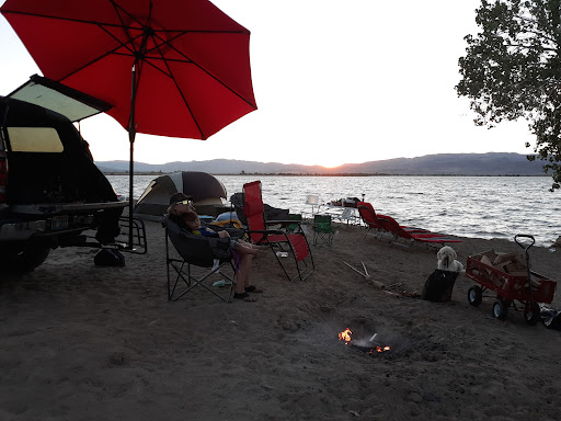 Lahontan offers a closer alternative for boaters and campers. It's a desert-terrain campsite, so don't expect pine trees and bear lockers. Think sand and sagebrush. It's about 45-50 min from Reno and the water is considerably warmer than the snow melt of the Alpine lake. The open campsites are great: find a spot on the beach and it's yours. There are even a few spots in the lake that are deep enough at the shoreline to allow you to pull your boat right up to your campsite. Vault toilets are located around the perimeter of the lake and indicate beach numbers and there are showers on the Northern beaches (odd numbers).