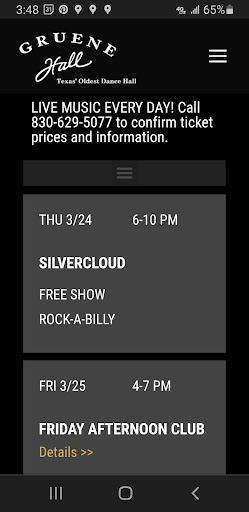 Read moreI came to Gruene (pronounced Green) Hall to watch my son play. #AlexHuther, #Silvercloud I adored this building. My son took me up on the old stage, and I saw graffiti thank you notes from a couple of names I recognized. Ricky Skaggs' brother left a note, so look for it.