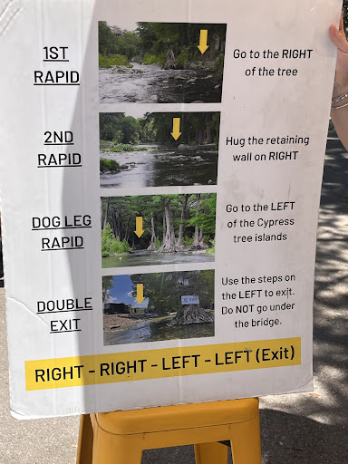 If you prefer paying your entry fee upon arrival, brace yourself for potentially longer lines. But fear not, once you've secured your float, head over to the nearby wristband pick-up area. Here, you'll find a sign laden with invaluable information about potential obstacles, rapids, and the best route to take when the river forks. It's like having a trusty guide steering you through the twists and turns of the Guadalupe's watery realm.