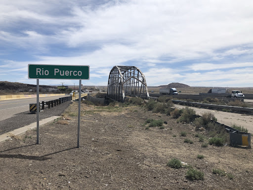 This bridge was built in 1933, and, although it's no longer safe for vehicle use, kudos to New Mexico for not tearing it down. This was on the original Route 66, and I like to think that some of my Okie ancestors drove across this bridge in its first decade as they headed to California. You can imagine John Steinbeck driving over this bridge as he was formulating the story of the Joad family for the Grapes of Wrath. There's a parking area on the west side of the bridge (which happens to be right on the old US 66 roadway pavement). Get out, stretch your legs, and walk across this bridge. Look at how narrow it is -- remember, this was a two-lane road. If you're approaching on I-40, take the Rio Puerco exit (Exit 140); it's on the north side of the freeway (next to the westbound lanes, so eastbound should cross over the freeway, and you'll see it right after...