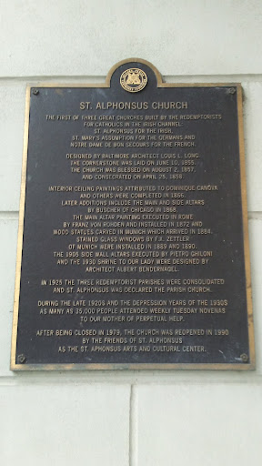 Allow time to visit the church next door - St. Alphonsis. This church, unfortunately, is no longer in use. The stain glass windows are exquisite, as are the ceiling frescoes, and other features. See this church, built by Irish immigrants, before it deteriorates further. It's tragic to see it in this condition. Photos are of the...
