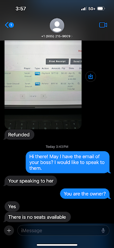 Here is one of the many screenshots I have from the owner since she wants to threaten me by saying I was rude. So how about we let the customers decide like she wanted :) As you can see I just asked to speak to the owner since this was the second time my group was getting kicked out of the tour I paid for with a...