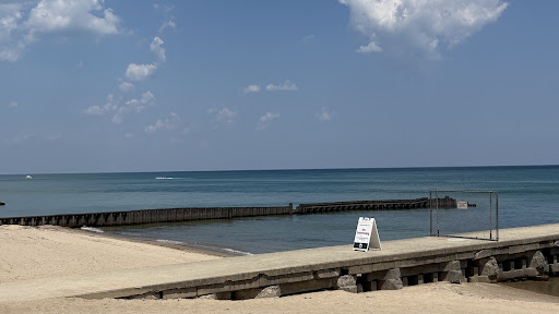 We walked down to the beach and it had a bath house. There is a bit of a bluff on the upper level of the park with s Pleasant View of Lake Michigan. I suspect that you have to purchase a beach pass to use the beach or to sail a...