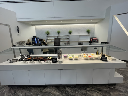 First lounge I accessed with my priority pass. Right off the bat it was nice to have access to a relaxed and comfortable environment in the brutal transit camp called LaGuardia airport. The lounge is rather small in size compared to other ones I've been to. I do give them credit for how they've tried to make the best of an awkward space. Went here on a friday night around 7 and it was busy without being crowded. It says there is enough space for 72 people but I think it can accommodate about 35 without getting crowded. There are restrooms inside the lounge which is great. They have a no cell phone use area also which is nice if you want to get work done.