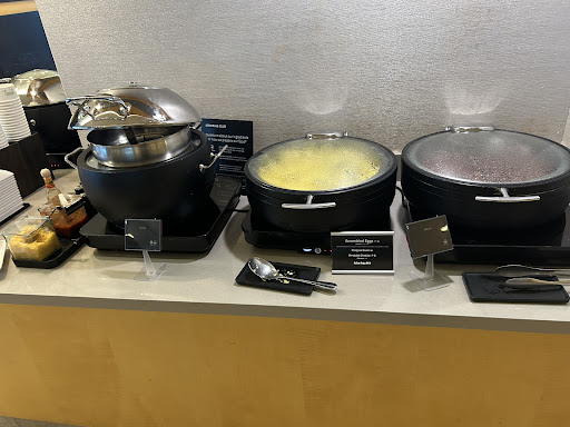 Went to get breakfast, they had scrambled eggs, bagels which may have not been fresh. Chobani yogurt. Went to get coffee, their machine is broken. American Airlines lounge, has one coffee machine, and that's broken.