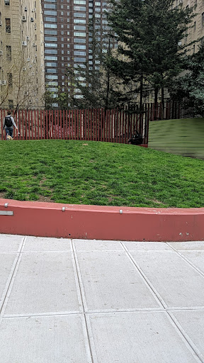 This is NOT a dog park! This is a small park that faces Ninth Avenue and West 57th Street. It is near the 57th Street cross town bus and it is a handy spot to rest for a short time when you are en route to local shops. Construction is taking place on Ninth Avenue and this can be a noisy location. The small green grass area is frequently used for dogs to do whatever and it spoils the environment for people, especially locals who like to lie in the sun.This is not an area for dog walking unless you are making a very quick walk through to get to 57th Street. This is a popular spot for smokers and newspaper reading. There is a kiosk that sells ice cream and pizza slices. For those who like to sit there are benches. Seating is limited. There are two entrances. One of them leads to a few swings and a place to sit. Yes, the Harmless Homeless do tend to rest there but I can't see they are...