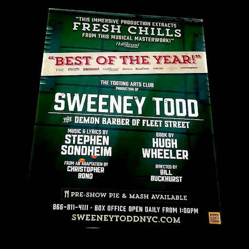 Read moreAttend the tale of Sweeney Todd! Great show and cast. The meat pies are also excellent. This is an imersive space and the blocking for the play is amazing. I can't say enough about the cast, all of which were fantastic. The night I attended there were several understudies on the roster, and I have trouble imagining that they were not the first choice for these parts. Really great performances by all members especially Mrs. Lovett and Sweeney. All the entertainers had amazing voices. This is definitely worth your...