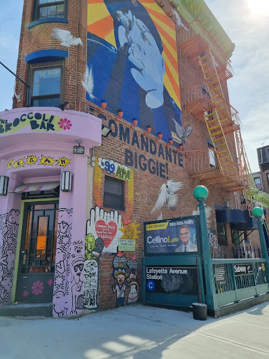 Read moreA fresh, vibrant installation of RESPECT to a BKLYN Legend! Comandante Biggie! And above the NYC Slutty Vegan spot is crazy 💯 40 Acres & A Mule studio right around the corner on Quincy makes this a staple hiphop culture attraction....
