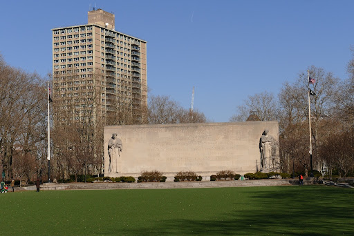 The Brooklyn War Memorial is a war memorial installed in Brooklyn's Cadman Plaza, in the U.S. state of New York. It features two high relief figures sculpted by Charles Keck, which represent victory and family, as well as a memorial wall in its main auditorium.