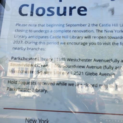 Ā Ā Ā Read moreThe Castle Hill library is my favorite branch in the Bronx ! Despite the changing staff over the years ( my son and I have been going there since 2007) the staff is always professional, patient and kind. They expect and gently enforce ( by example) a quiet and reverent atmosphere. Its their behavior that sets the tone for exploring the joys of reading for the young and old alike. My hope would be that someday they could expand, add a second floor ( like they did in parkchester). As a child , I was taught to revere learning institutions . This branch is elite. The staff at Castle Hill provide a welcoming and non " stuffy" vibe but still is the quietest branch in comparison to the surrounding branches. I...