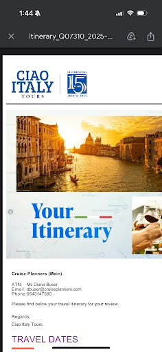 Read moreI have been using Ciao Italy Tours for many years for all of my customized tours to Italy and Sicily....as well as their escorted tours. They have been outstanding in customer service and professionalism especially during the pandemic all of my clients, and there were many were taken care of, with a refund or voucher... Guido and Renee and the other agents at Ciao ,know Italy and will go out of their way to make sure your clients get the best experience ever...You never have to worry they are there for your clients 24/7 ... For my agency Mystic valley Travel there is no other tour company that I would use without hesitation then Ciao Italy Tours Rita Cornelio President Mystic Valley Travel...