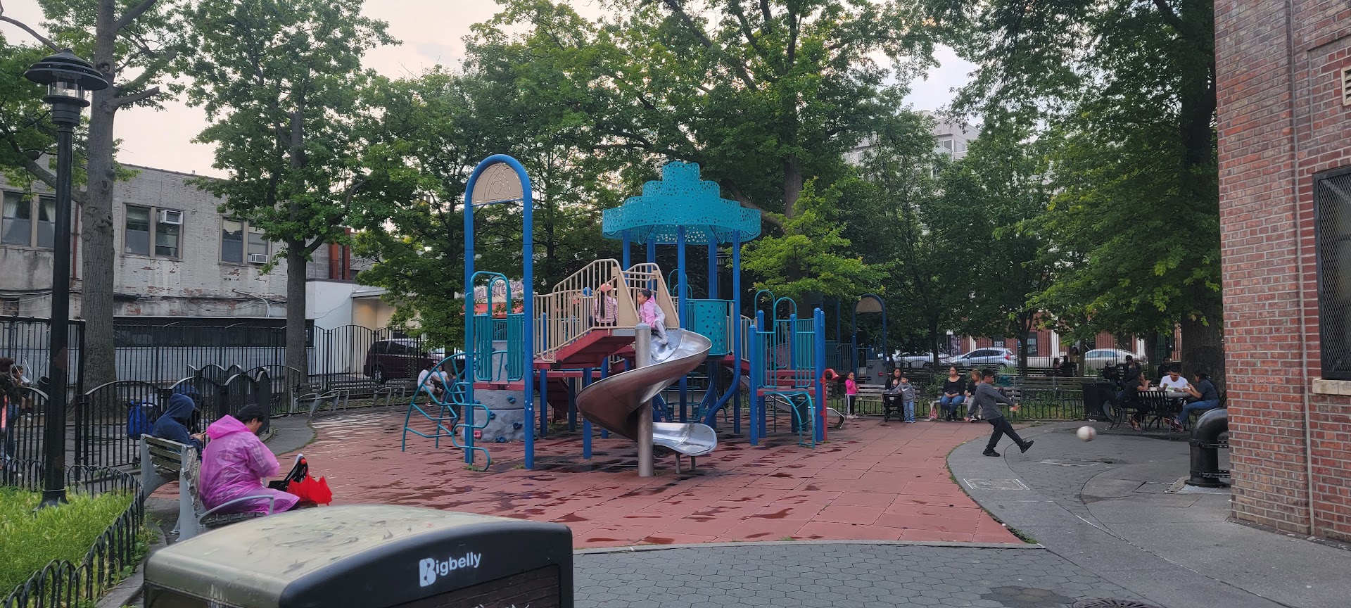 This park used to be so much better in the 90s when there was the handball court, monkey bars, the little hide out underneath the slide, board game competitions during the summertime and soccer games. Ever since they so called "renovated " it only became less kid friendly and more sterile feeling. The space that used to be for handball, soccer and monkey bars is now just a huge area of benches and seating for old people to hang out all day. Also the section with the structures for people to work out attract grown men without kids that are sometimes not acting in a kid friendly manner. Loud music, cursing, drinking. Most of the park is useless to kids. It's just not...