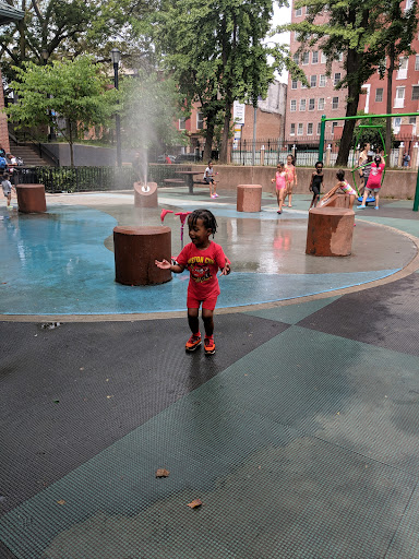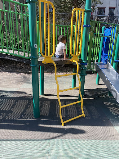 A clean, safe, inviting park. A central fenced in playground with a water spray, large jungle gym, and more. An upper section with overlooking benches and tables. A section with swings and other play sculptures, one with bells and drums. A third section contains a basketball court. There is a bathroom for men and one for women. Clean enough for a park and well tended by the parks DEPT employees who are frequently seen tending the park. A destination for several preschools in the area as well as for mothers and nannies with children. A safe, well gated and fenced park where children playing and adults sitting are common. Lots of large old trees shade the benches and there is a water fountain that works and tastes ok. This is a lovely place to spend some time with...