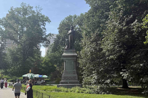 There is a monument to early 19th century politician Daniel Webster located along the 72nd Street Transverse Road in Central Park, just southwest of Wagner Cove at The Lake.
