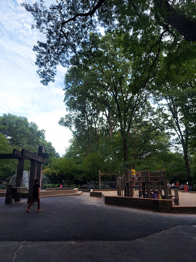 So I'm normally pretty easy to please with places, but the only actual thing I liked about this playground was how close it was from one of the entrances to Central Park. Being from California and visiting New York for the first time, I was pretty sad to experience this playground like we did. One of the kids got a whole bunch of sand in my son's eye, and we ran out of water trying to get it out. My husband ran to the water fountain for more (wasn't working) and then walked out to find a bathroom. No where near us at all. Thankfully another witness gave him her water bottle to help. But the fact that it's a playground for kids and there's no bathrooms near by is a pretty big bummer to me. For potty emergencies for the Littles and in cases like this where we needed water for my sons eyes. The playground itself was decent, but even my kids said they've enjoyed better elsewhere. But the 3 stars is for the non working fountain and the location with the bathroom. Location to enter was good, but the bathroom is more important when you got kids and, well, playground...