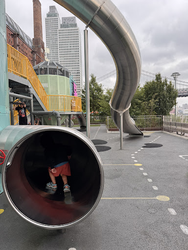 This playground is the most anxiety inducing playground in Brooklyn for parents. The kids love it. These parents (my wife and I ) hate it. The only thing they got correct from a Saftey point of view is there is one way in or out. Here are the four stars of deductions. First, the fence around the playground is far too low. Of a kid can jump over it with ease or climb it with ease, then a kid can be disappeared out of the park. Second, there is deep, cold, turbulent water, very close to the playground with its fence that is too low. Third, there are no clear sight lines for where your child is for the entire playground. If you loose sight of your child, you don’t know if they are in the playground, over the fence, in the water, or stolen. Fourth, all the climbing things have no visibility from the outside and have entrances that a parent will have difficulty following their child to keep an eye on them. We live within a 30 minute walk and we avoid this playground regularly. In short, I give this playground one star because my already elevated blood pressure is even higher due to anxiety every time I or my wife brings...
